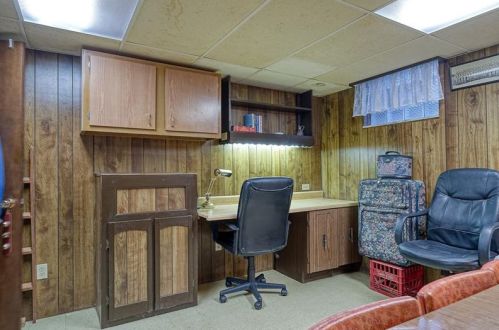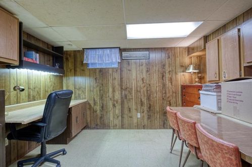 The property has a masonry facade, attached garage and partial basement on near a third of acre lot.