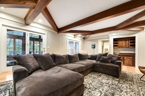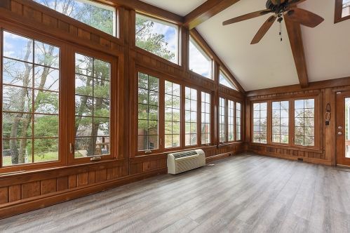 This property with approximately fifty hundred square feet of living space on near an acre was erected in the eighties.