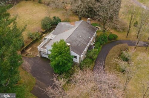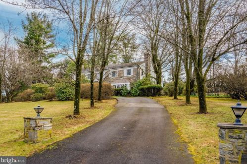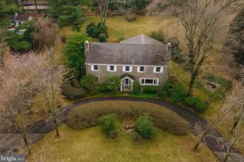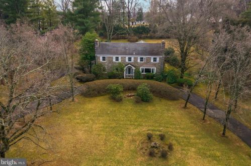 The single-family colonial style estate is placed at the end of the street at 1636 Old Welsh Road, Huntingdon Valley, PA.