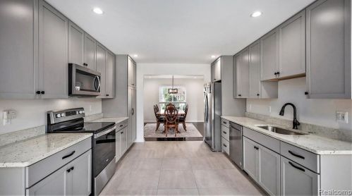 The single-family residence stands at 21048 Strawberry Hills Drive, Macomb Township, Michigan.