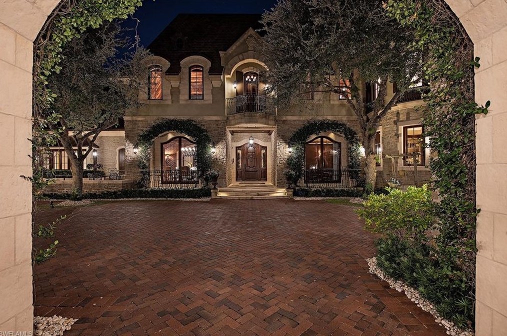 At 2140 Canna Way, Naples, FL based a single-family French style residence.