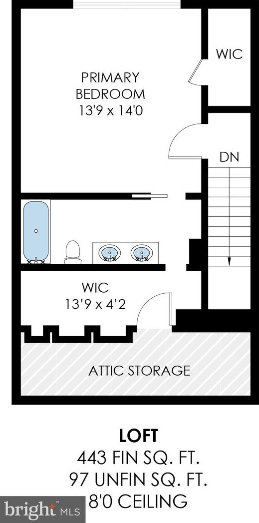 Attic: vacant, crawl space above top story, cupola