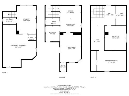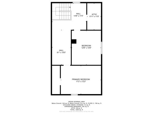Attic: vacant, crawl space above top story, cupola