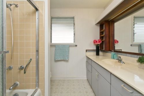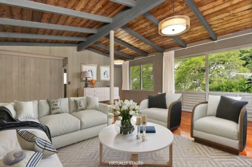 The contemporary modern style one single-family estate is situated at the end of the street at 3019 Polohilani Pl, Honolulu, HI.