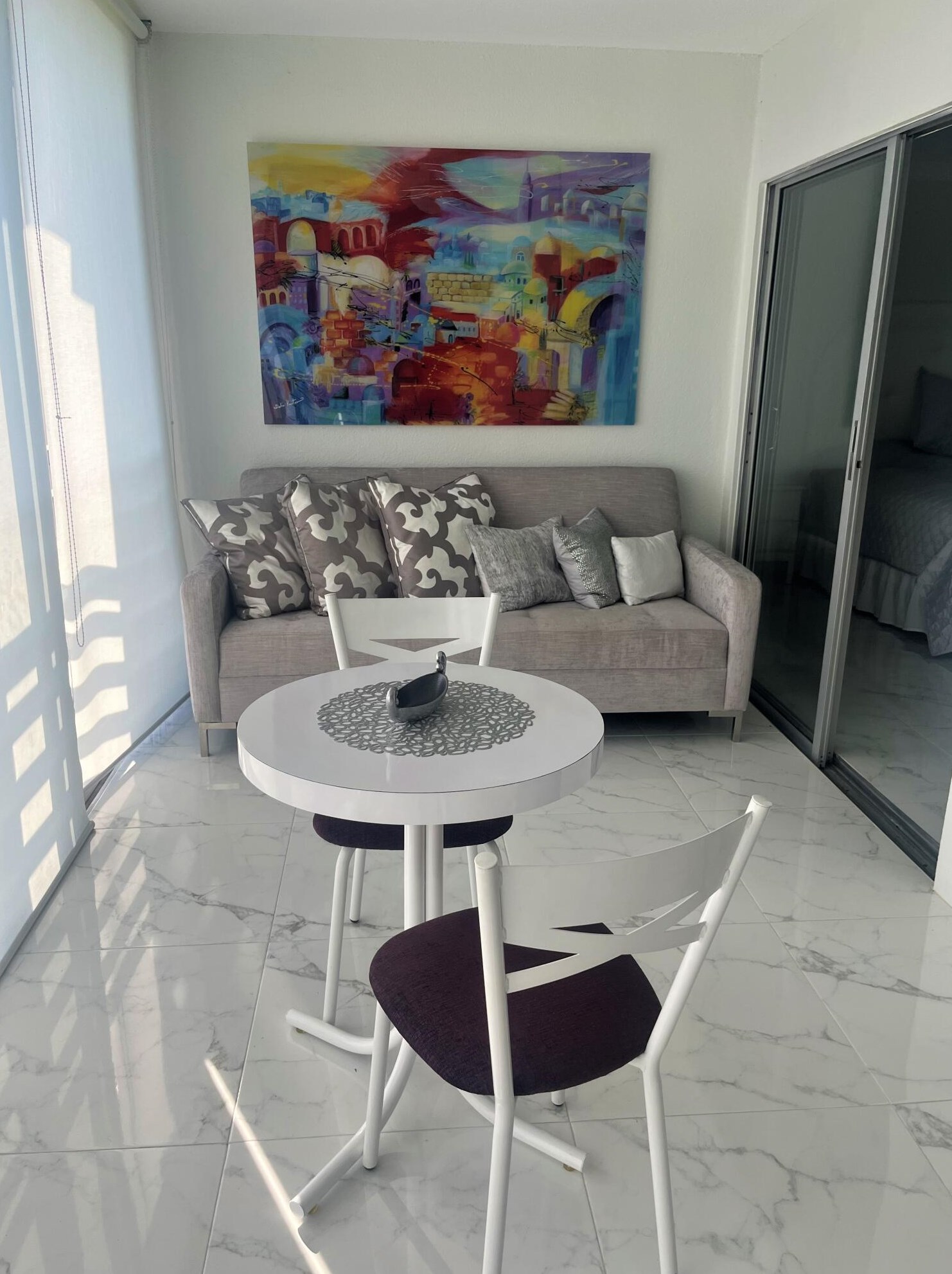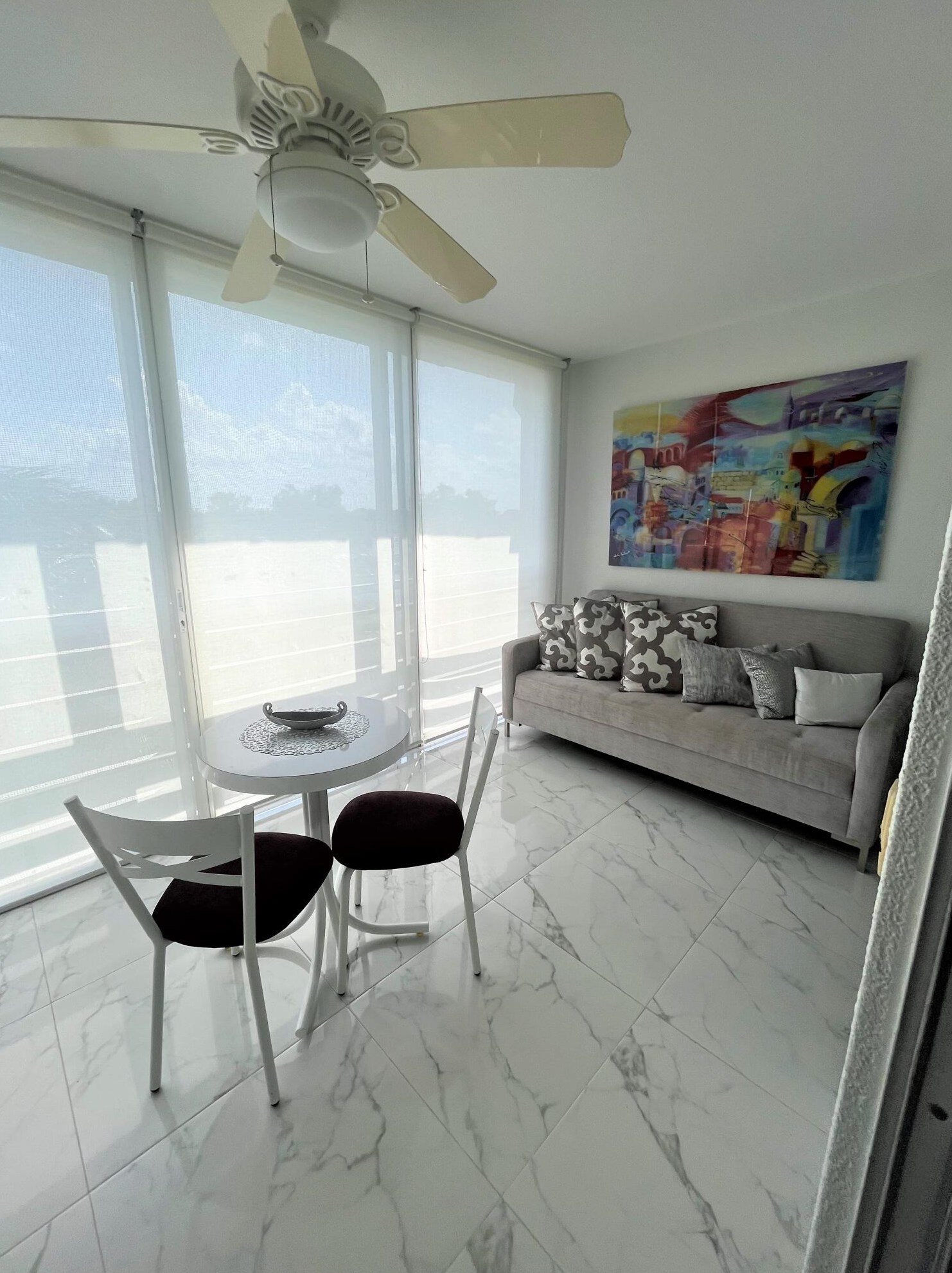 This condominium with more than ten hundred square feet of habitable area was erected in the eighties.