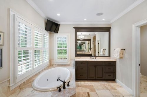 This near forty-eight hundred square feet property with 14 rooms including 5 bedrooms and 5 1/2 bathrooms was built in 2010 on about one acre.