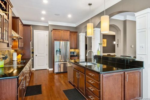 The single-family home is situated at 45950 Rapids Drive, Macomb Township, MI.