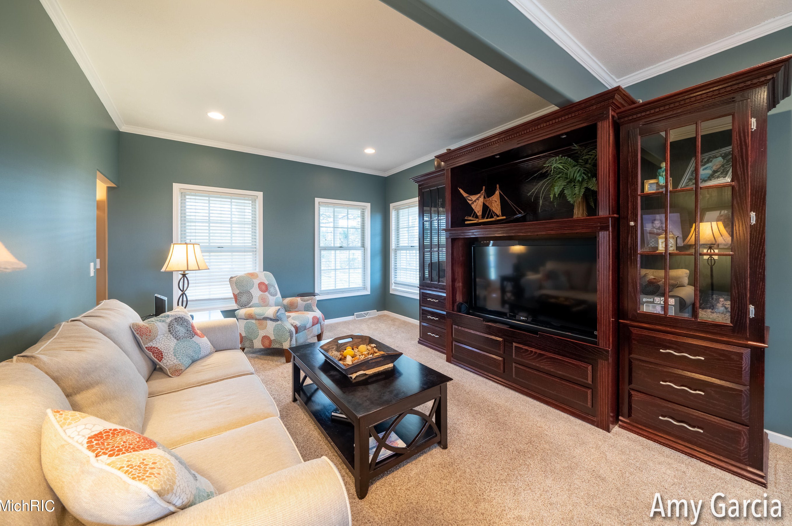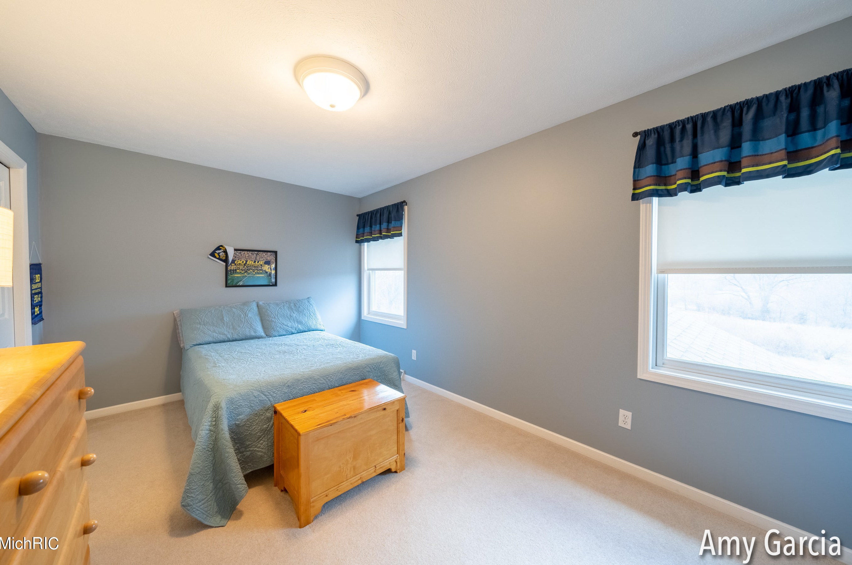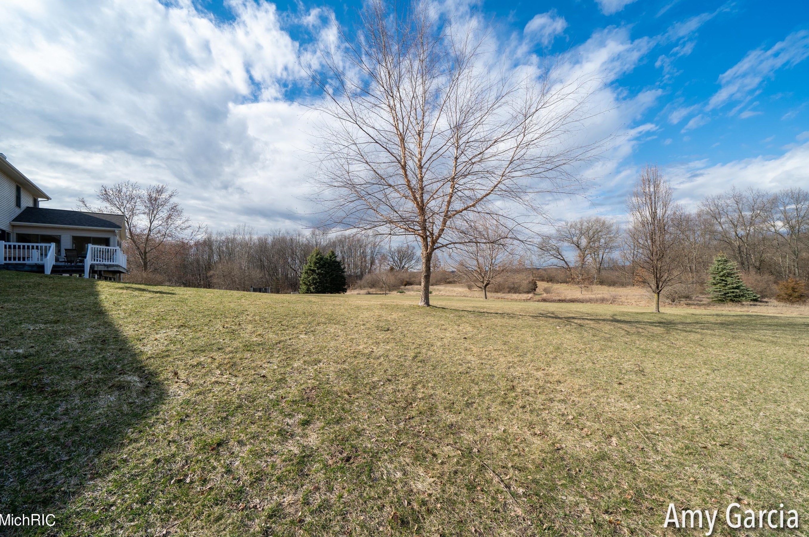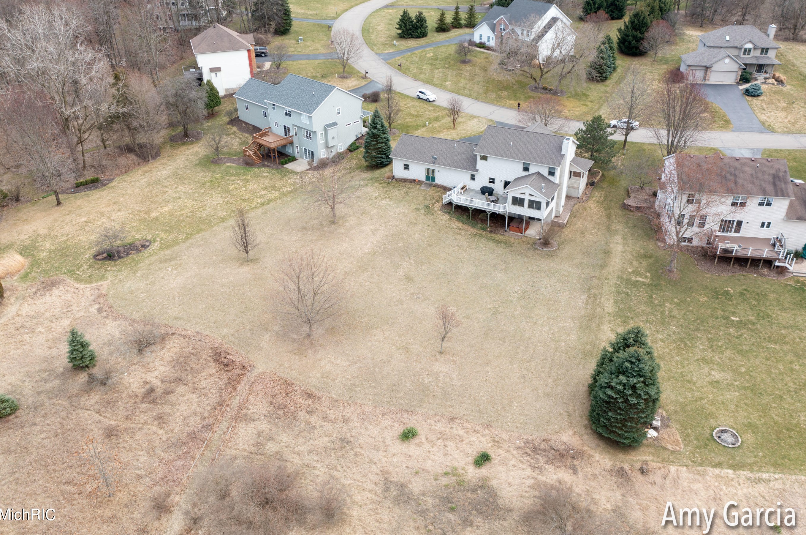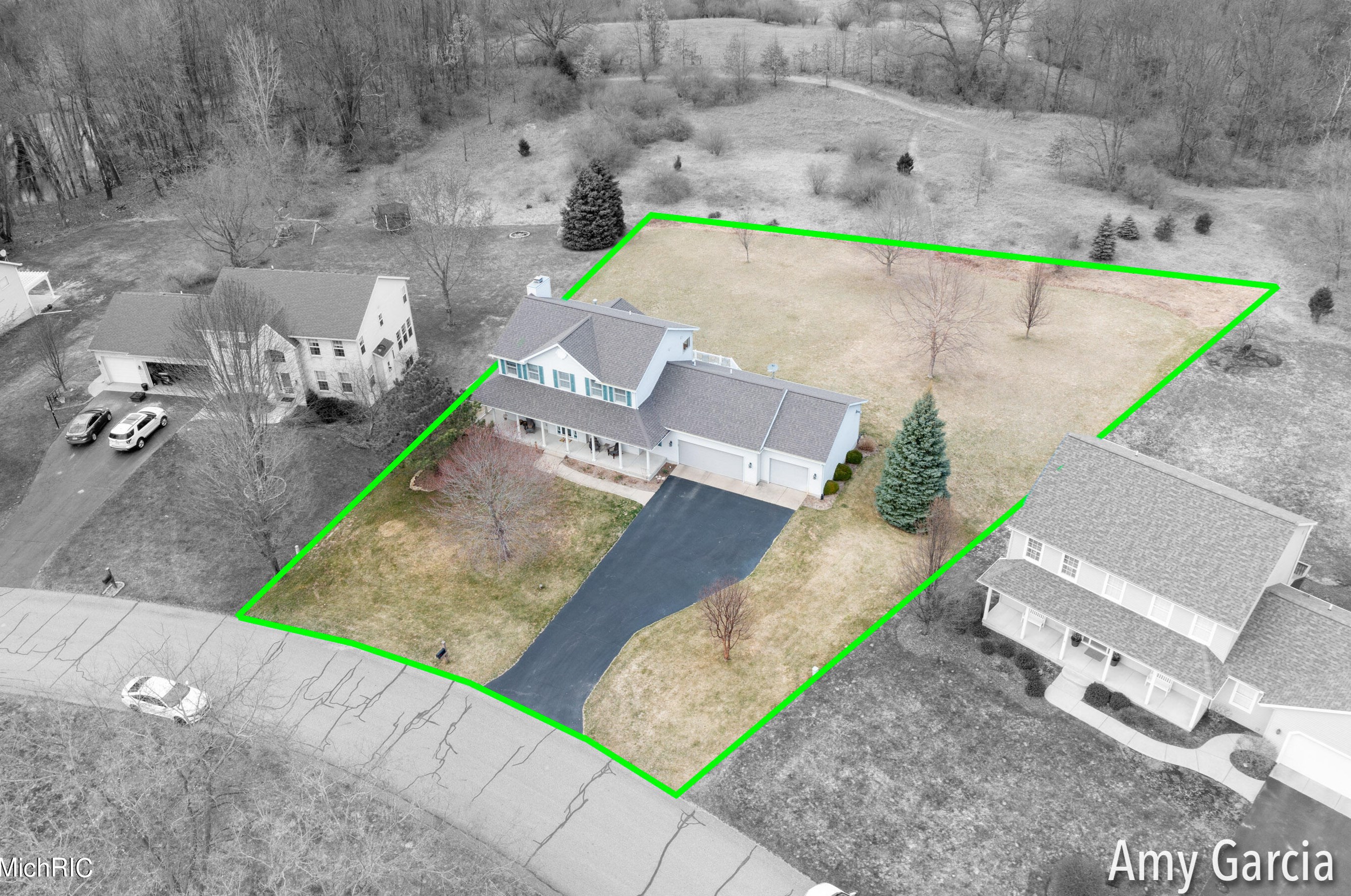 The single-family home stands at the end of the street at 4750 Sunflower Ridge Dr, Ada, MI.