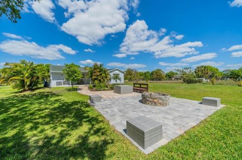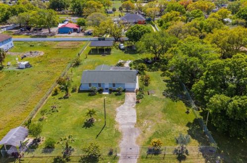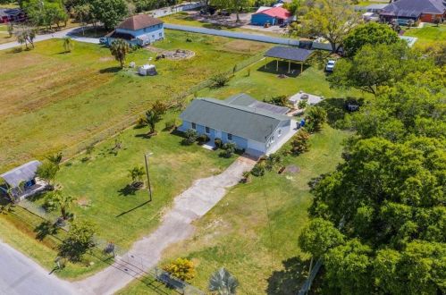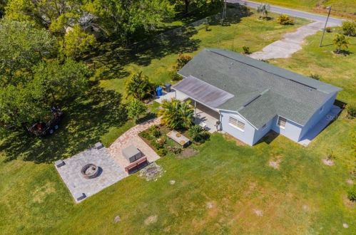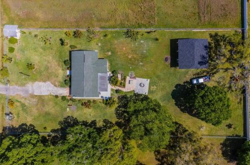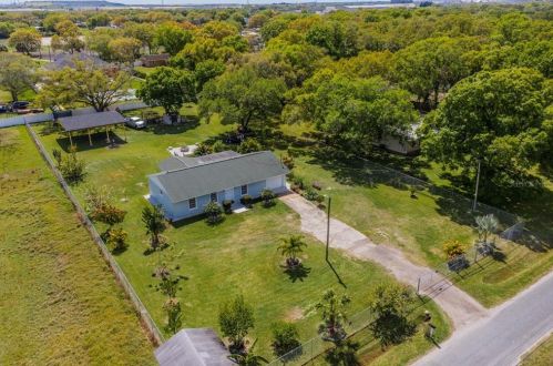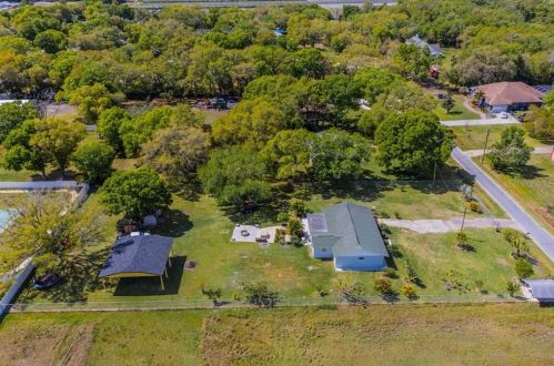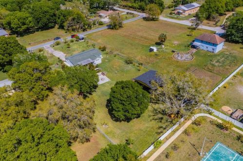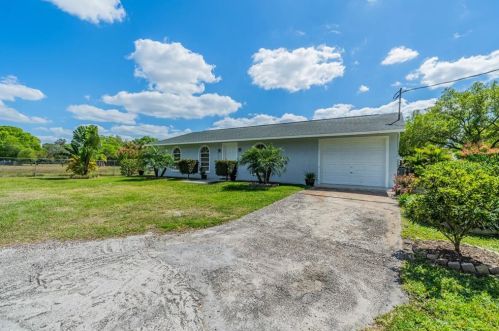 The property has a stucco facade, garage and composite roof on approximately an acre lot.