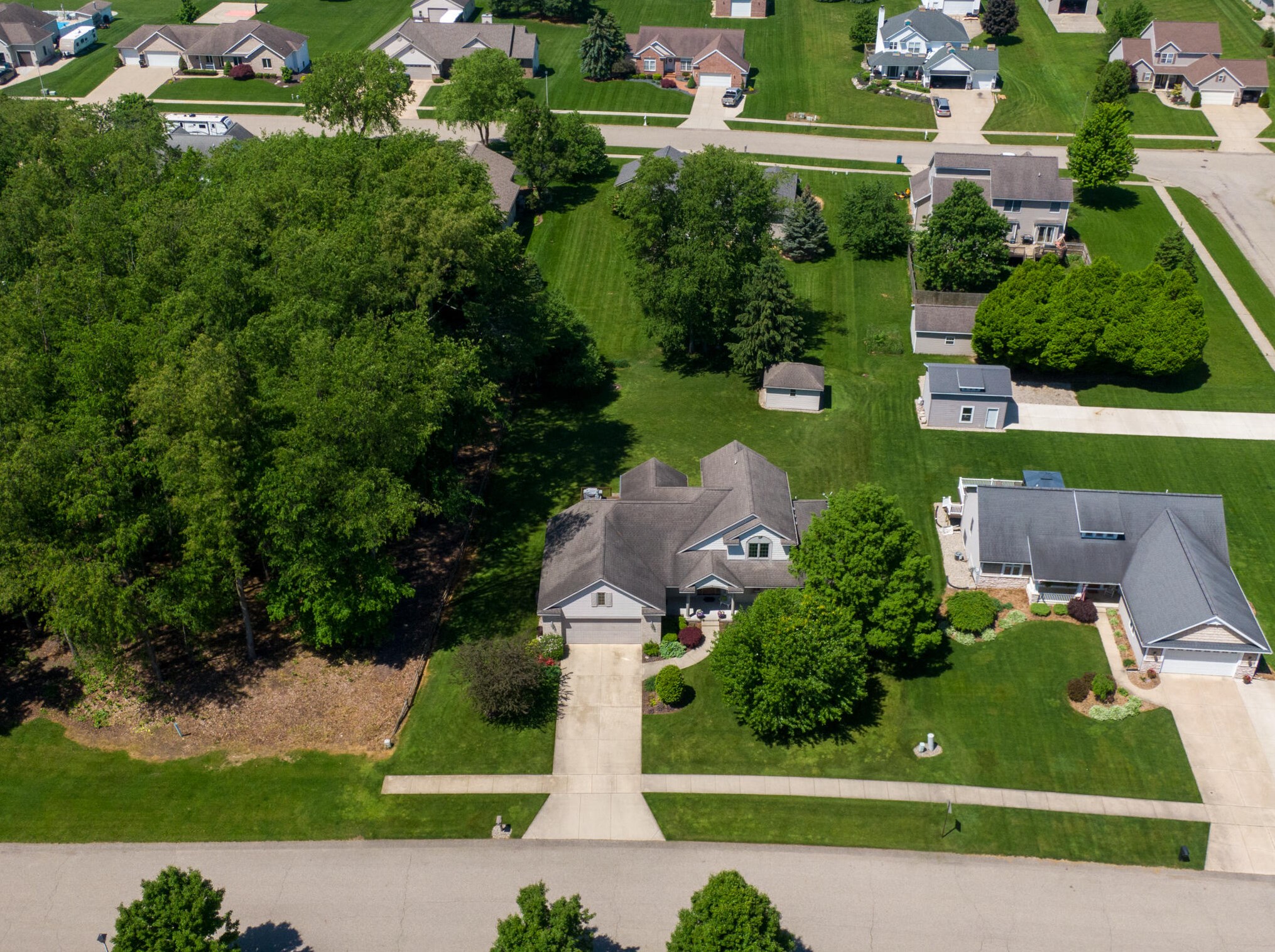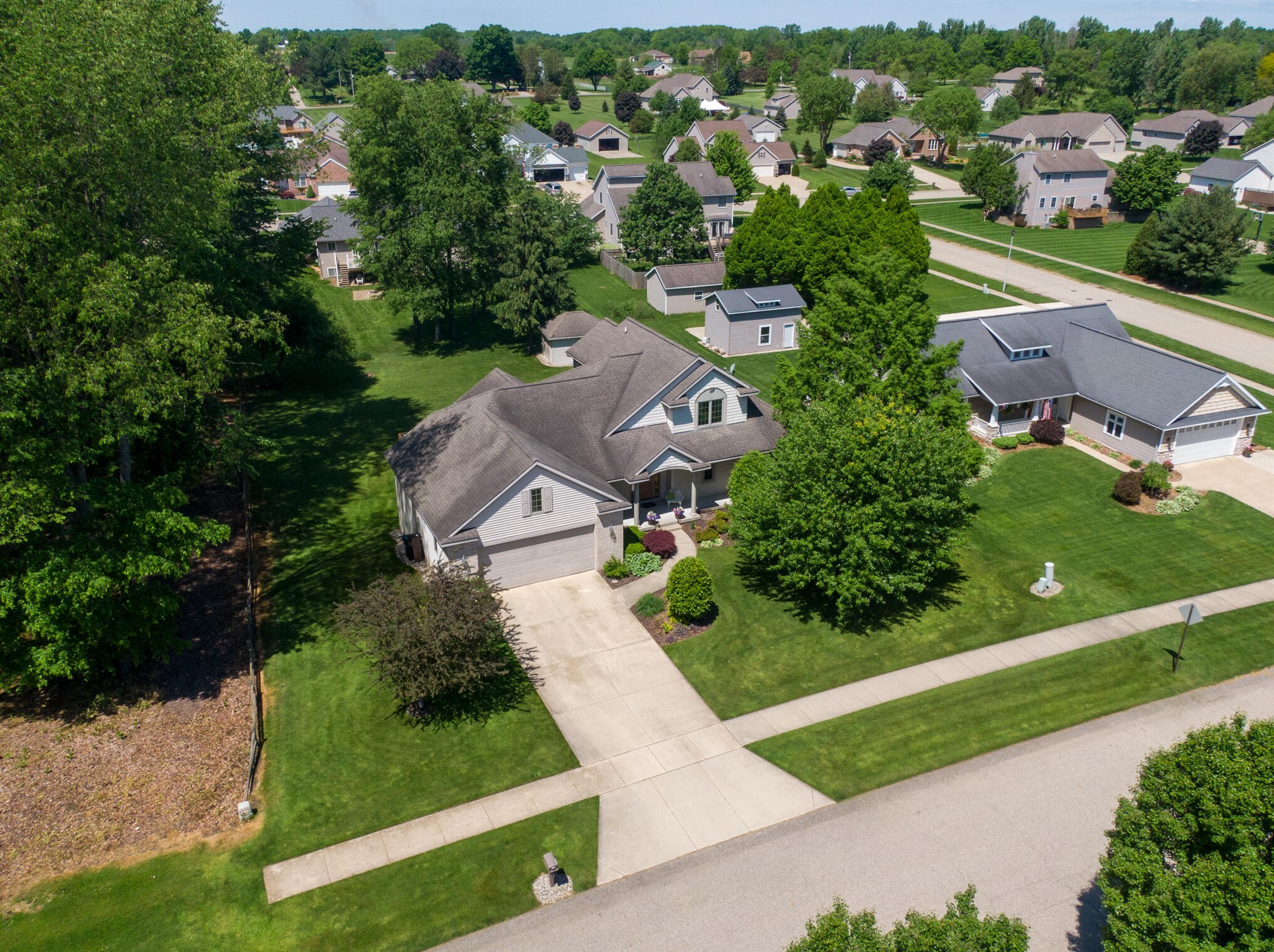 The single-family estate stands at the end of the street at 7391 Southwood Avenue, Byron Township, Michigan.