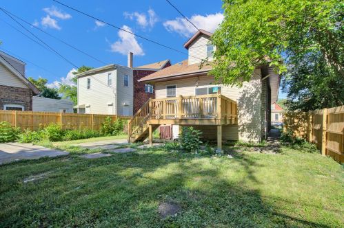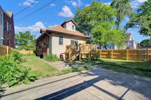 The bungalow is placed at the end of the street at 8821 Emerald Ave, Chicago, IL.