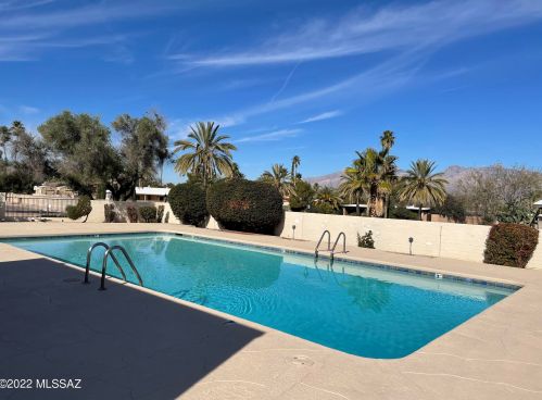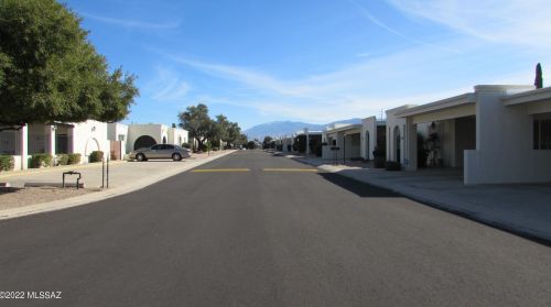The condominium stands down the street at 9031 Palms Park Drive, Tucson, AZ.