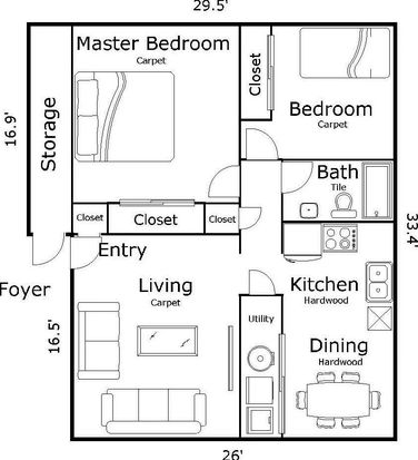 Bedrooms: 2Bathrooms: 1Area: 928 square feet